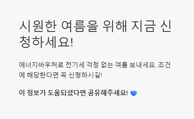 올여름, 에너지바우처와 함께 시원하게 보내세요! 꼭 해보세요!