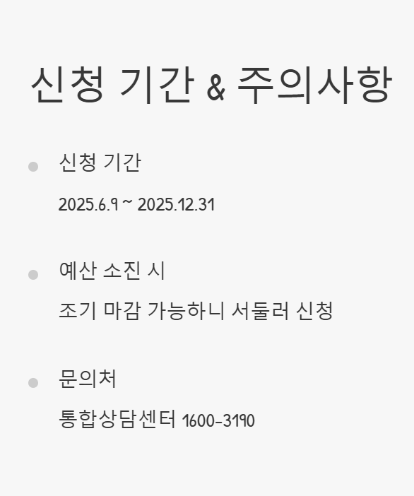 다만, 예산이 모두 소진되면 예정보다 일찍 마감될 수 있으니, 최대한 빨리 신청하는 것이 좋습니다. 다들 서둘러야겠죠?