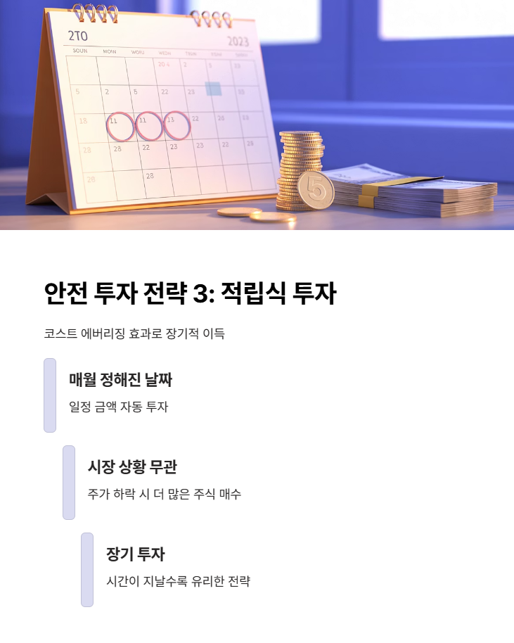 이 세 가지 방법만 기억하시면 초보자도 쉽게 안정적인 투자를 시작할 수 있습니다.
