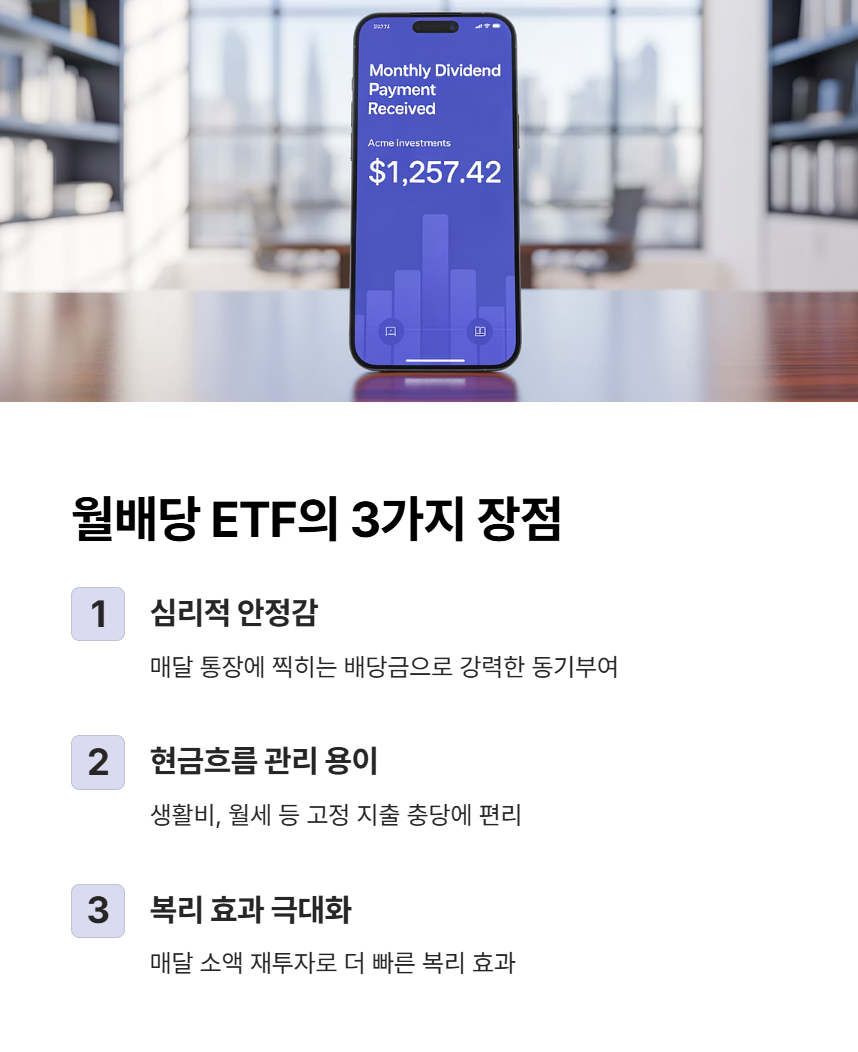 월배당 ETF는 매달 일정한 현금 흐름을 제공해 생활비나 현금 관리에 유리하고,