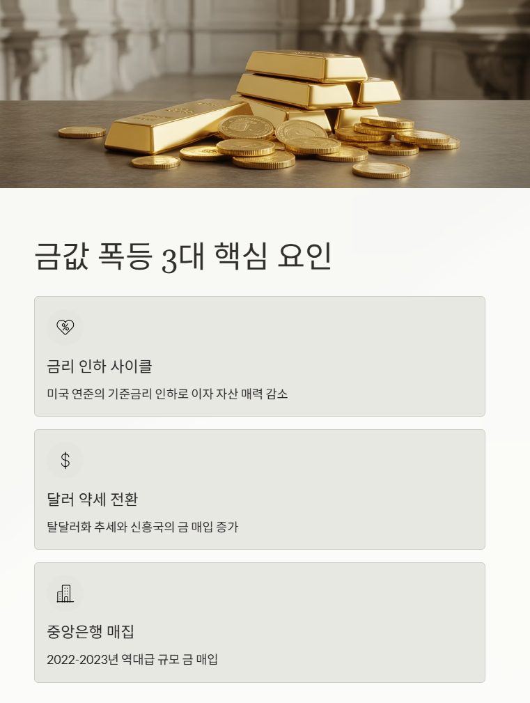 전문가들이 꼽는 금값 폭등의 3대 핵심 이유를 자세히 살펴볼게요.