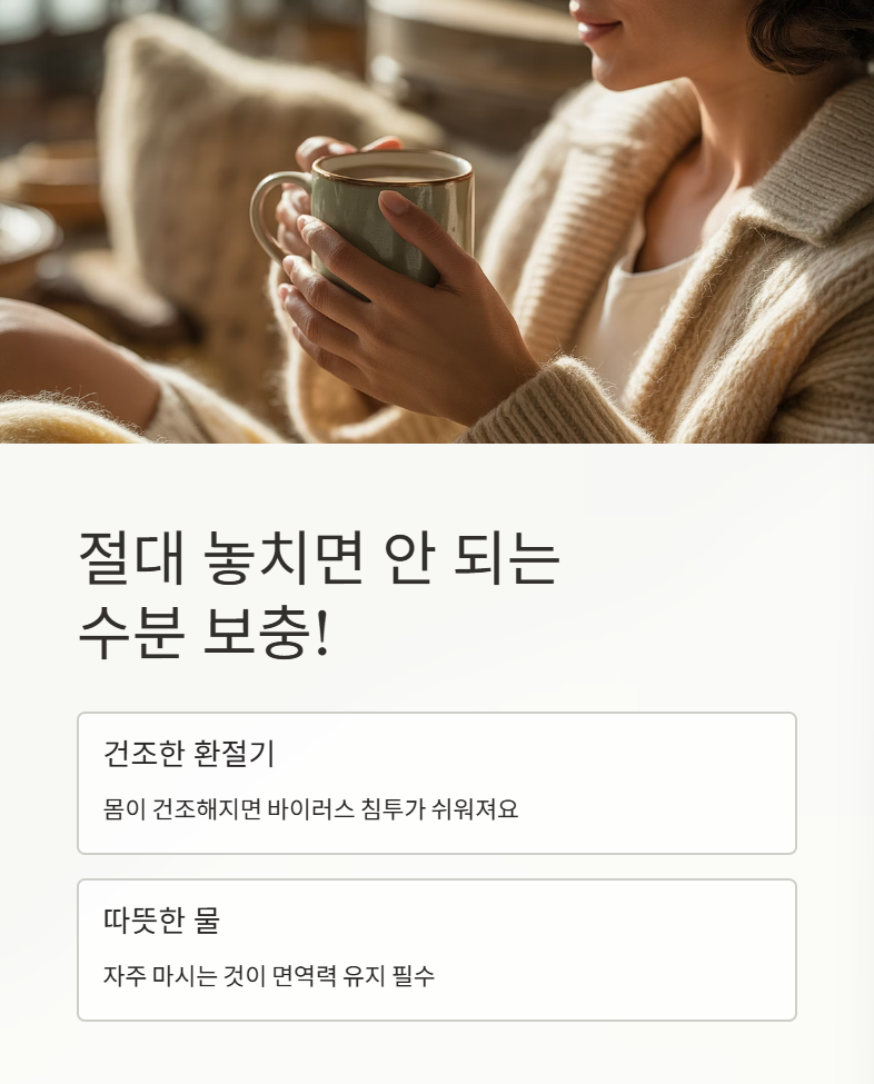 환절기에는 몸이 건조해지면서 바이러스 침투가 쉬워져요.