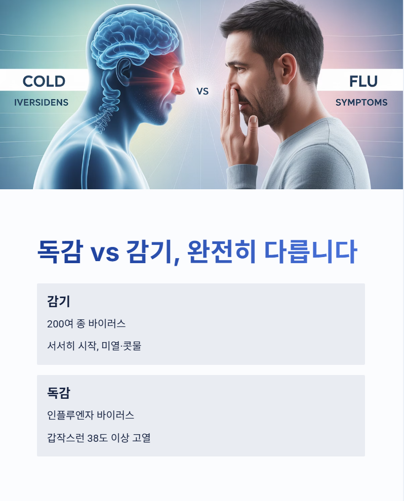 💡 핵심 포인트: 독감과 감기의 결정적 차이