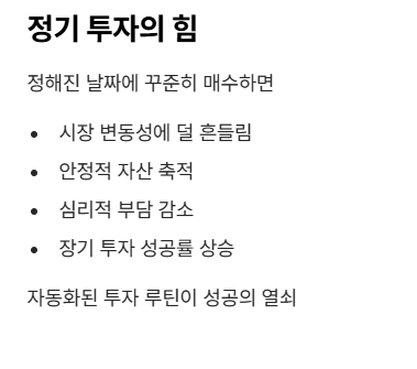 이러한 규칙적 투자 방식은 심리적 부담을 줄이고 장기 투자에도 도움이 됩니다.