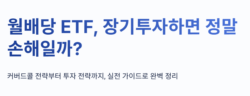 월배당 ETF, 장기투자하면 정말 손해일까? 커버드콜 전략의 단점부터 월배당 ETF의 장점, 위험요인, 목적별 투자 전략까지 실제 사례로 쉽게 정리했습니다.