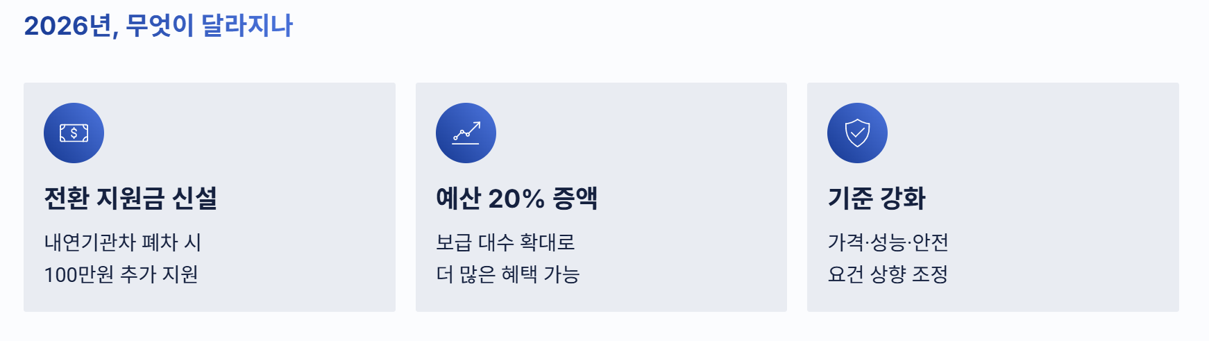 이번 글에서는 2026년 보조금의 핵심 변화와 전환 지원금 적용 조건,