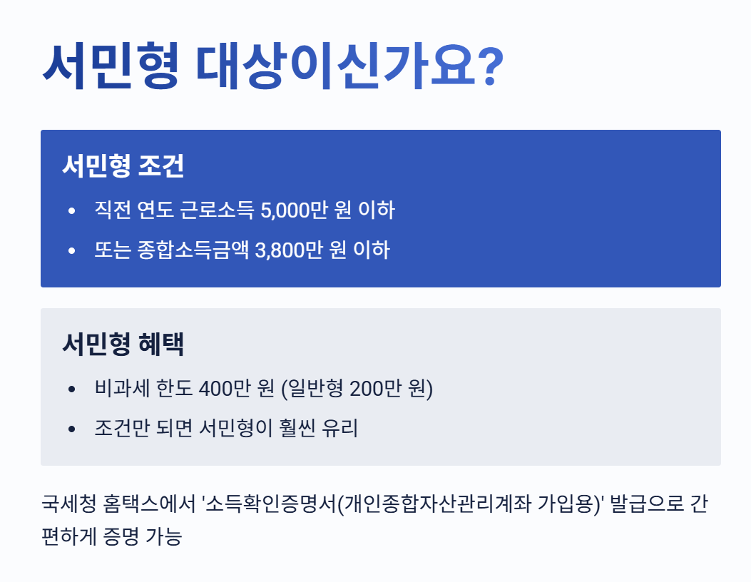 서민형은 일반형보다 비과세 한도가 더 크기 때문에,