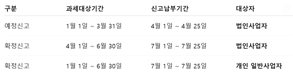 • 법인사업자는 예정신고와 확정신고를 모두 해야 합니다.