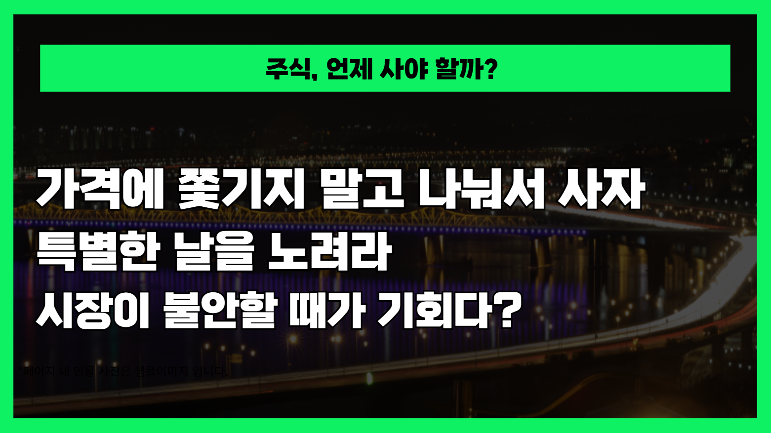주가를 예측하는 건 전문가도 어렵기 때문에, 타이밍보다는 전략이 우선입니다.