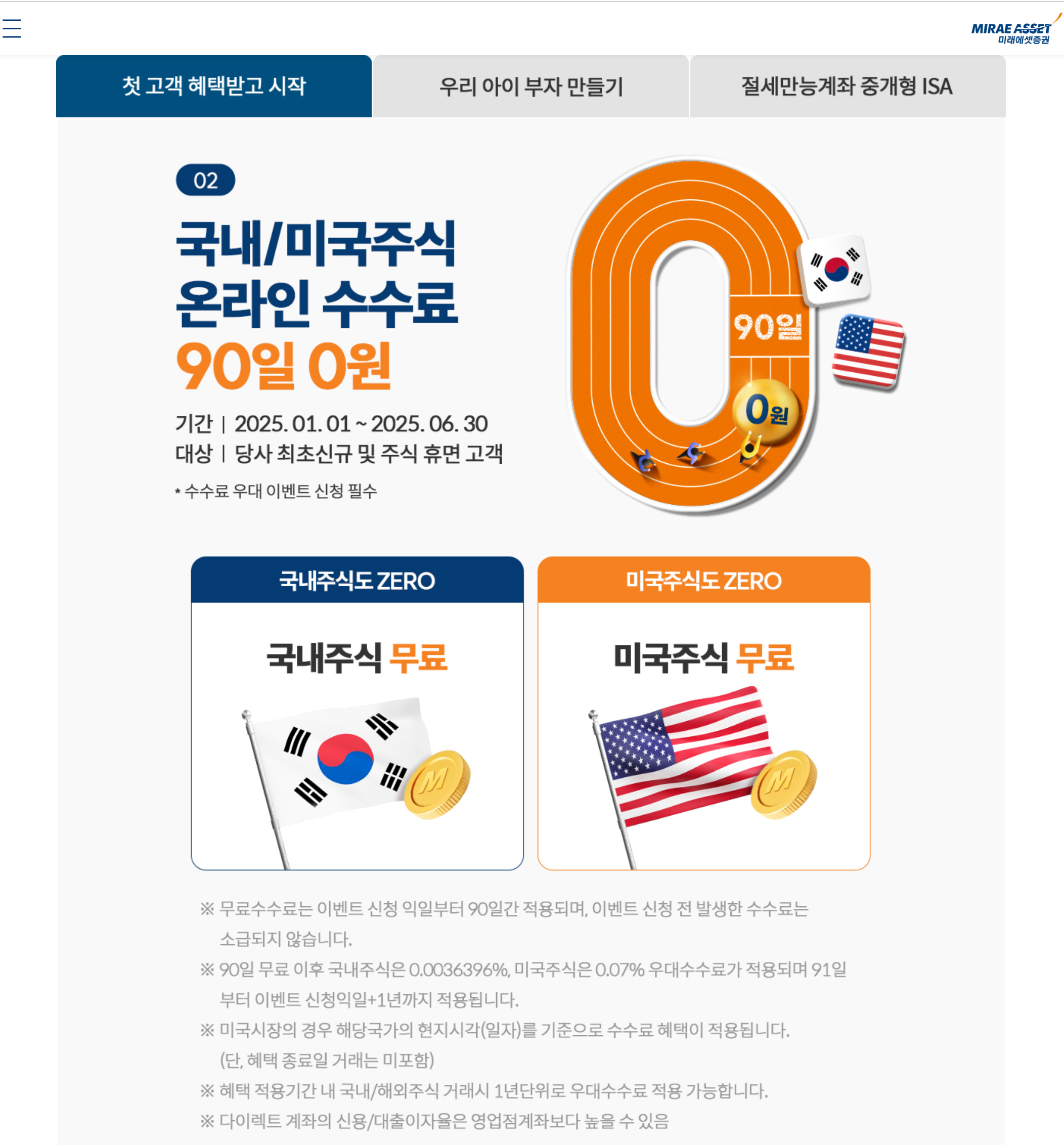 국내 주요 증권사는 기본 0.25% 수수료지만, 신규 가입자 대상으로 이벤트를 자주 진행합니다
