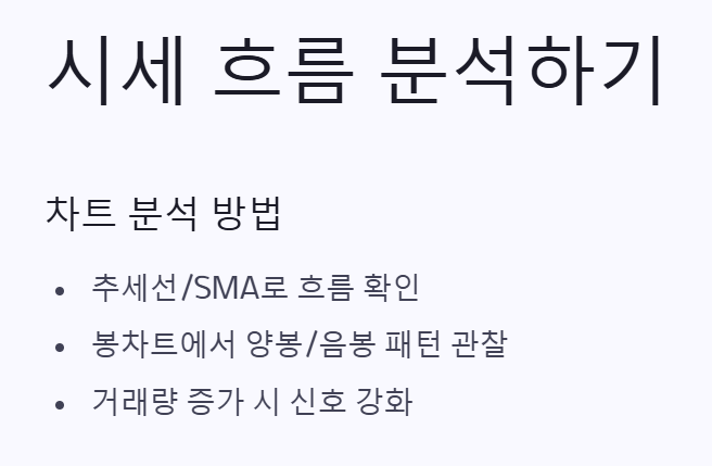 차트의 추세선/SMA를 보고 흐름을 확인하세요.