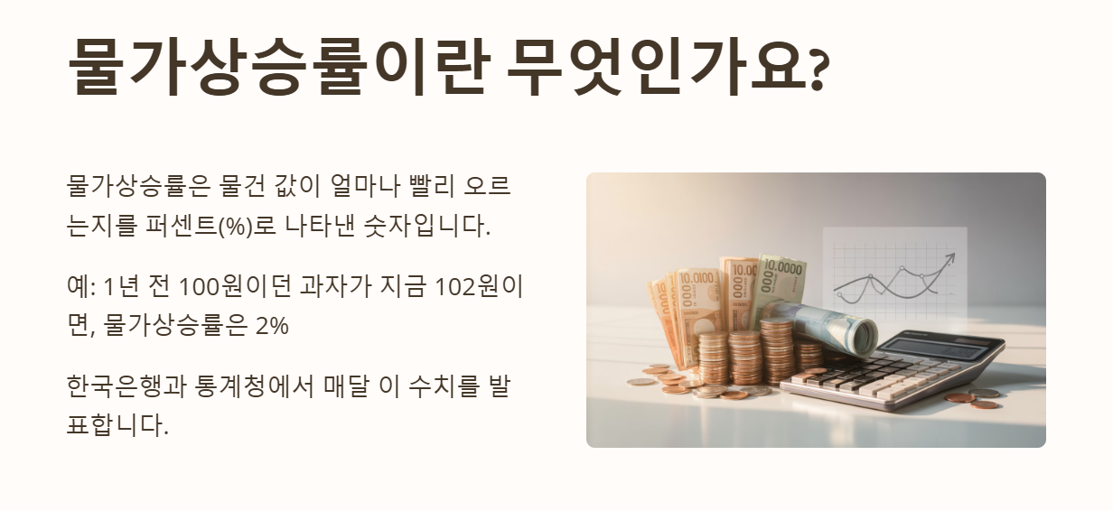 마트에서 장을 보면 예전보다 돈이 더 많이 드는 걸 느끼셨을 거예요. 사실 2025년 현재 우리나라 물가상승률은 약 2.1% 수준으로 나타났습니다. 이 글에서는 물가상승률이란 무엇인지, 그리고 물가가 오르는 이유 5가지, 정부의 대책, 물가 확인 사이트까지 차근차근 알려드리겠습니다.
