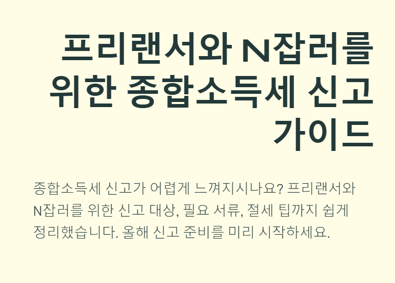 종합소득세 신고 어렵다고 느끼시나요? 프리랜서·N잡러를 위한 신고 대상, 필요 서류, 절세 팁까지 쉽게 정리했습니다.