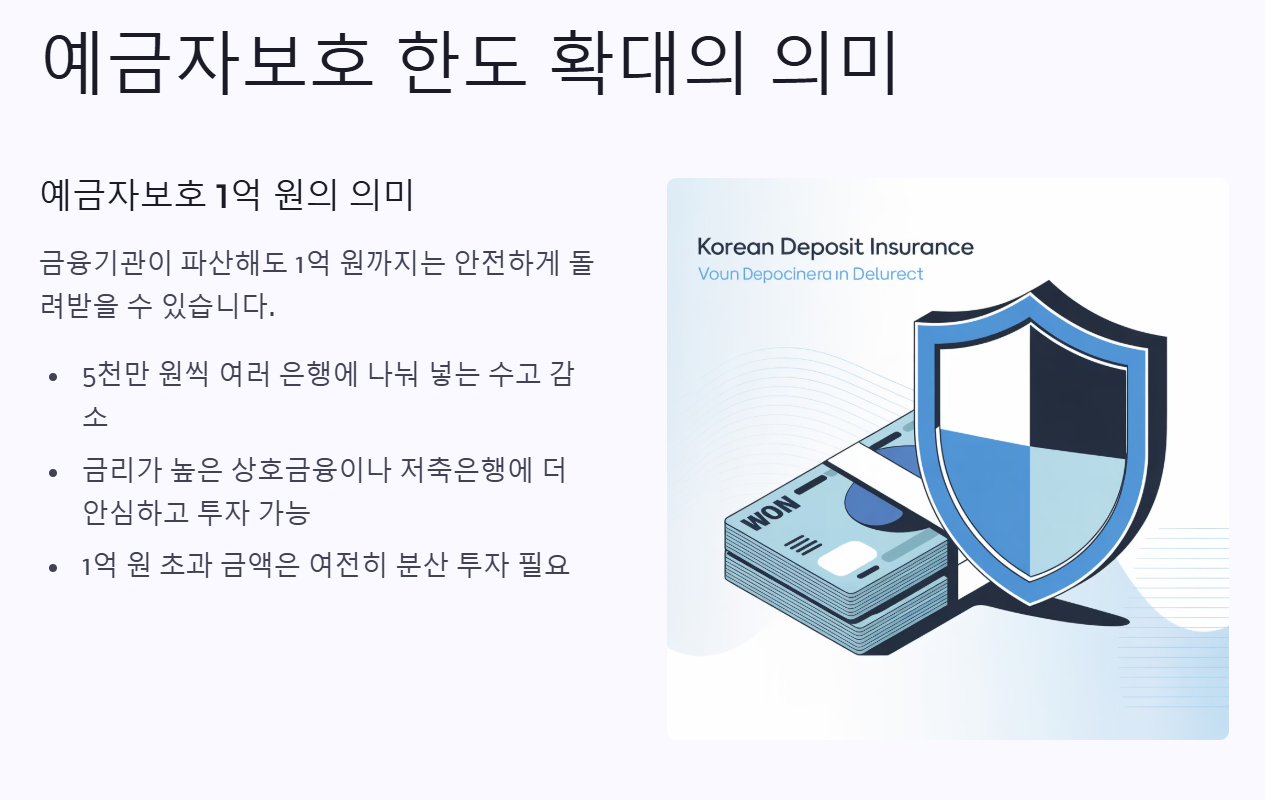 가장 중요한 변화 중 하나는 바로 예금자보호 한도 상향입니다. 2025년 9월 1일부터는 혹시라도 금융기관이 어려워져도, 내 돈 5천만 원만 보호받던 것이 1억 원까지 안전하게 보호받을 수 있게 됩니다. 이젠 여러 은행에 나눠 넣을 필요 없이,