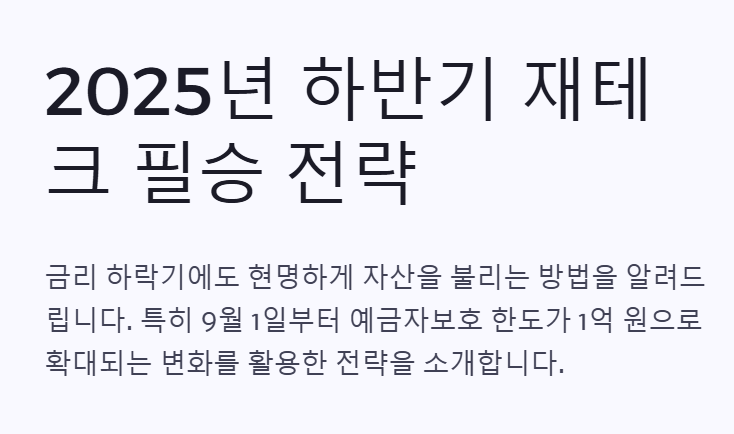 2025년 하반기, 변화하는 금융 시장 속에서 여러분의 돈을 안전하게 지키고 더욱 불려나갈 수 있기를 바랍니다.