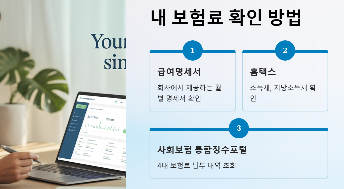 가장 정확한 방법은 매달 회사에서 주는 급여명세서를 확인하는 것입니다. 만약 급여명세서가 없다면, 다음 방법들을 활용해 보세요.