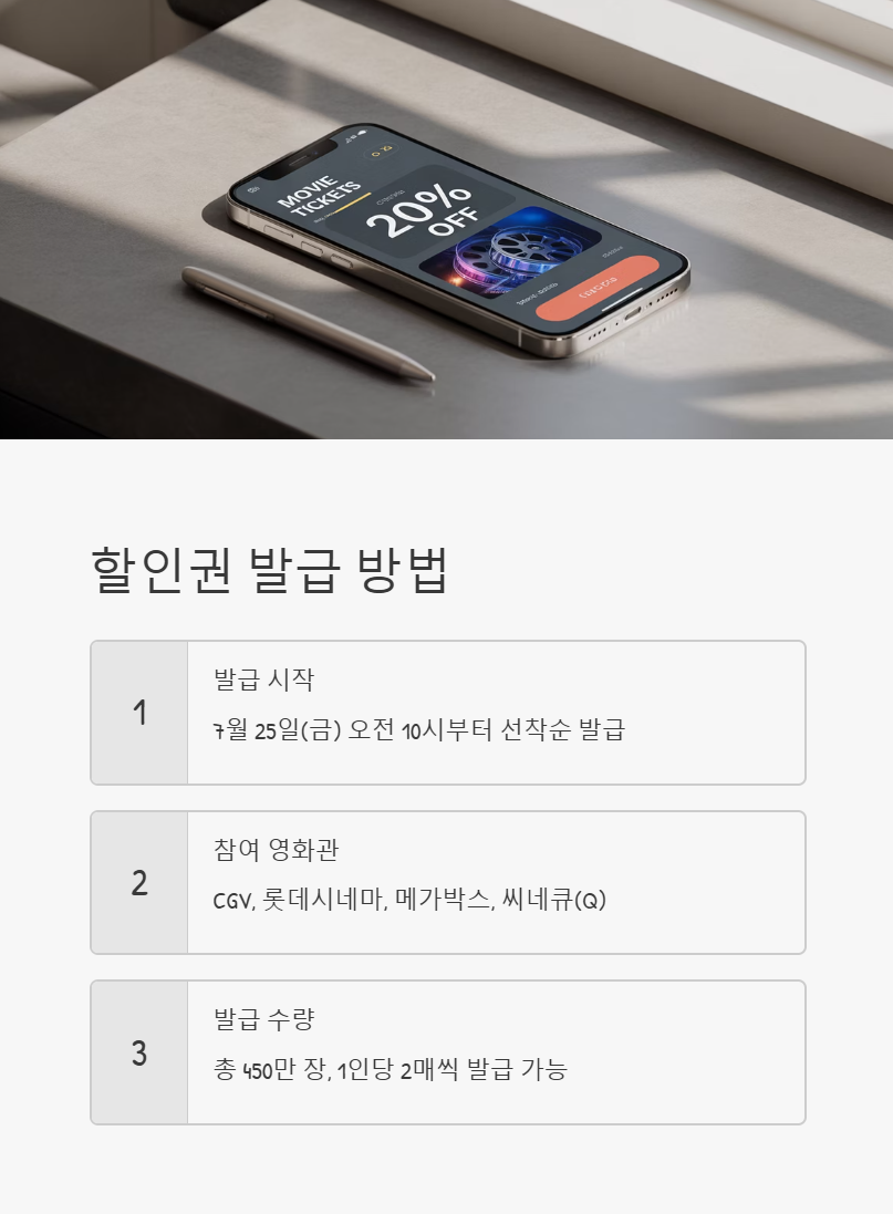 7월 25일(금) 오전 10시부터 주요 멀티플렉스 영화관 홈페이지나 앱에서 선착순으로 받을 수 있습니다.